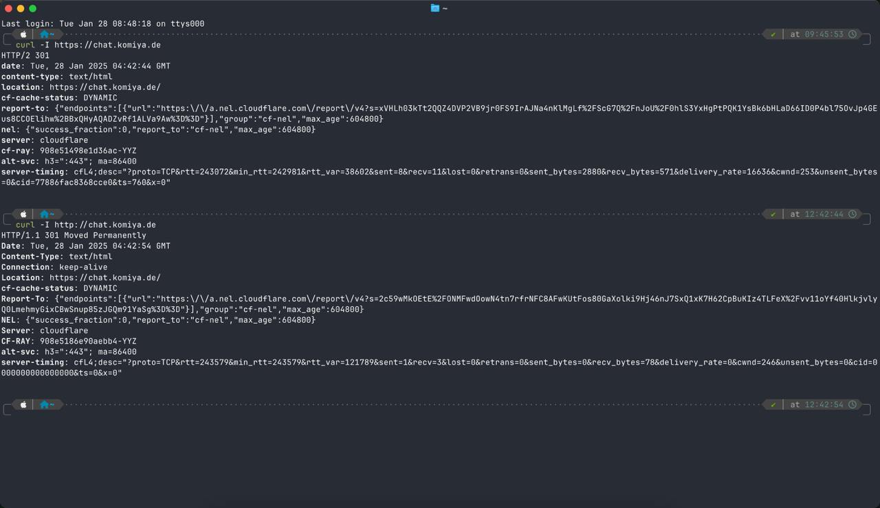 尝试curl域名,发现HTTP和HTTPS的回显状态码均为301: