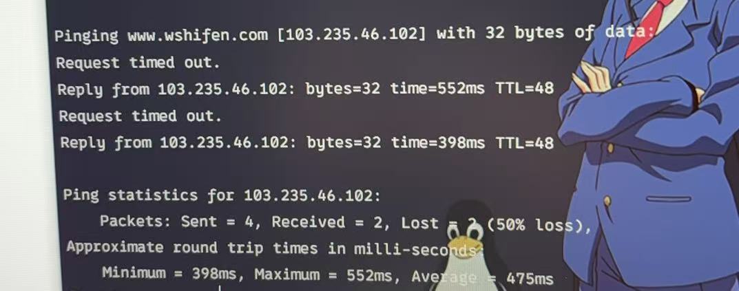 电脑尝试ping包发现50%丢包。